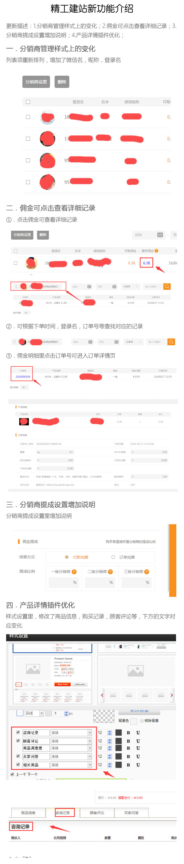 更新-分销后台增加佣金明细等